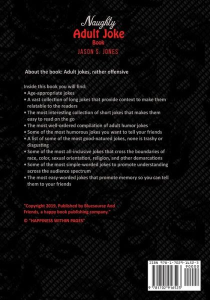 This book consists of: Naughty Adult Joke Book #1 Dirty, Slutty, Funny Jokes That Broke The Censors Naughty Adult Joke Book #2 Dirty, Funny And Slutty Jokes That Soiled The Streets Of London Naughty Adult Joke Book #3 Dirty, Funny And Slutty Jokes That Make Japanese Sashimi Smells Bad Naughty Adult Joke Book #4 Dirty, Funny And Slutty Jokes That Pollute The Dirtiest Minds Naughty Adult Joke Book #5 Dirty, Funny And Slutty Jokes That Exploded The Indian Call Centre Naughty Adult Joke Book #6 Dirty, Funny And Slutty Jokes That Are So Flithy You Need A Shower Naughty Adult Joke Book #7 Dirty, Funny And Slutty Jokes That Should Never Be Said In Bed Naughty Adult Joke Book #8 Dirty, Funny And Slutty Jokes About Asian Women And Other Small Parts Naughty Adult Joke Book #9 Dirty, Funny And Slutty Jokes That Made You Play Golf With Your Boss Naughty Adult Joke Book #10 Dirty, Funny And Slutty Jokes About Yo Mama That Are So Flithy, She Needs To Disinfect Inside this book you will find: · Age-appropriate jokes · A vast collection of long jokes that provide context to make them relatable to the readers · The most interesting collection of short jokes that makes them easy to read on the go · The most well-ordered compilation of adult humor jokes · Some of the most humorous jokes you want to tell your friends · A list of some of the most good-natured jokes, none is trashy or disgusting · Some of the most all-inclusive jokes that cross the boundaries of race, color, sexual orientation, religion, and, other demarcations · Some of the most simple-worded jokes to promote understanding across the audience spectrum · The most easy-worded jokes that promote memory, so you can tell them to your friends Start Cumming Laughing Today By Clicking The "BUY NOW" Button