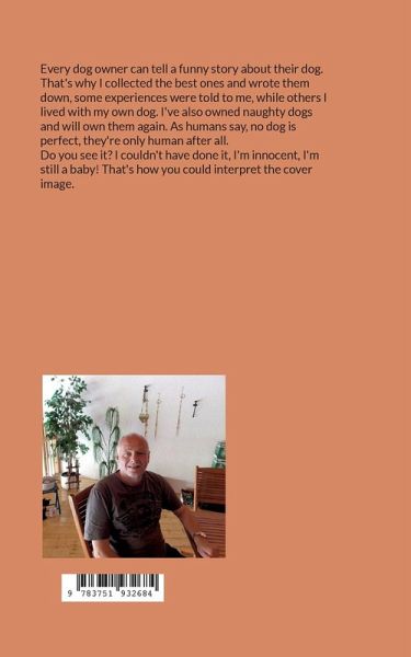 Every dog owner can tell a funny story about their dog. That's why I collected the best ones and wrote them down, some experiences were told to me, while others I lived with my own dog. I've also owned naughty dogs and will own them again. As humans say, no dog is perfect, they're only human after all. Do you see it? I couldn't have done it, I'm innocent, I'm still a baby! That's how you could interpret the cover image.