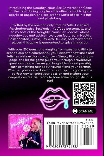 Introducing the Naughtylicious Sex Conversation Game for the most daring couples. With over 200 questions ranging from sweet and flirty to scandalous and educational, you'll discover new kinks and fetishes while exploring your own.