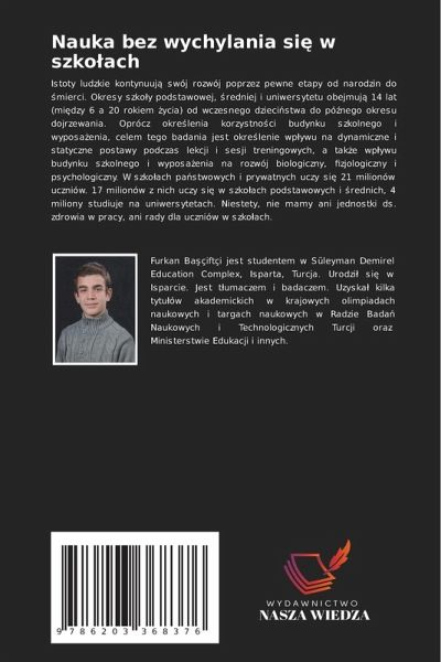 Istoty ludzkie kontynuuj¿ swój rozwój poprzez pewne etapy od narodzin do ¿mierci. Okresy szko¿y podstawowej, ¿redniej i uniwersytetu obejmuj¿ 14 lat (mi¿dzy 6 a 20 rokiem ¿ycia) od wczesnego dzieci¿stwa do pó¿nego okresu dojrzewania. Oprócz okre¿lenia korzystno¿ci budynku szkolnego i wyposäenia, celem tego badania jest okre¿lenie wp¿ywu na dynamiczne i statyczne postawy podczas lekcji i sesji treningowych, a tak¿e wp¿ywu budynku szkolnego i wyposäenia na rozwój biologiczny, fizjologiczny i psychologiczny. W szko¿ach pästwowych i prywatnych uczy si¿ 21 milionów uczniów. 17 milionów z nich uczy si¿ w szko¿ach podstawowych i ¿rednich, 4 miliony studiuje na uniwersytetach. Niestety, nie mamy ani jednostki ds. zdrowia w pracy, ani rady dla uczniów w szko¿ach.