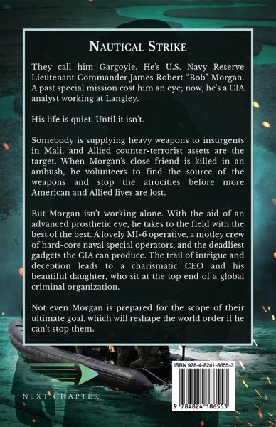 They call him Gargoyle. He's U.S. Navy Reserve Lieutenant Commander James Robert "Bob" Morgan. A past special mission cost him an eye; now, he's a CIA analyst working at Langley. His life is quiet. Until it isn't. Somebody is supplying heavy weapons to insurgents in Mali, and Allied counter-terrorist assets are the target. When Morgan's close friend is killed in an ambush, he volunteers to find the source of the weapons and stop the atrocities before more American and Allied lives are lost. But Morgan isn't working alone. With the aid of an advanced prosthetic eye, he takes to the field with the best of the best. A lovely MI-6 operative, a motley crew of hard-core naval special operators, and the deadliest gadgets the CIA can produce. The trail of intrigue and deception leads to a charismatic CEO and his beautiful daughter, who sit at the top end of a global criminal organization. Not even Morgan is prepared for the scope of their ultimate goal, which will reshape the world order if he can't stop them.