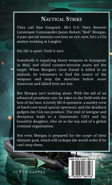 They call him Gargoyle. He's U.S. Navy Reserve Lieutenant Commander James Robert "Bob" Morgan. A past special mission cost him an eye; now, he's a CIA analyst working at Langley. His life is quiet. Until it isn't. Somebody is supplying heavy weapons to insurgents in Mali, and Allied counter-terrorist assets are the target. When Morgan's close friend is killed in an ambush, he volunteers to find the source of the weapons and stop the atrocities before more American and Allied lives are lost. But Morgan isn't working alone. With the aid of an advanced prosthetic eye, he takes to the field with the best of the best. A lovely MI-6 operative, a motley crew of hard-core naval special operators, and the deadliest gadgets the CIA can produce. The trail of intrigue and deception leads to a charismatic CEO and his beautiful daughter, who sit at the top end of a global criminal organization. Not even Morgan is prepared for the scope of their ultimate goal, which will reshape the world order if he can't stop them.