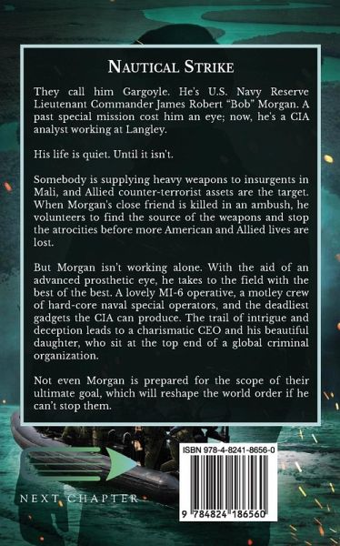 They call him Gargoyle. He's U.S. Navy Reserve Lieutenant Commander James Robert "Bob" Morgan. A past special mission cost him an eye; now, he's a CIA analyst working at Langley. His life is quiet. Until it isn't. Somebody is supplying heavy weapons to insurgents in Mali, and Allied counter-terrorist assets are the target. When Morgan's close friend is killed in an ambush, he volunteers to find the source of the weapons and stop the atrocities before more American and Allied lives are lost. But Morgan isn't working alone. With the aid of an advanced prosthetic eye, he takes to the field with the best of the best. A lovely MI-6 operative, a motley crew of hard-core naval special operators, and the deadliest gadgets the CIA can produce. The trail of intrigue and deception leads to a charismatic CEO and his beautiful daughter, who sit at the top end of a global criminal organization. Not even Morgan is prepared for the scope of their ultimate goal, which will reshape the world order if he can't stop them.