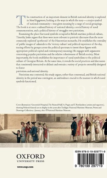 The construction of an important element in British national identity is explored in Naval Engagements, looking at the ways in which the navy - a major symbol of national community - was given meaning by a range of social groupings. The study is at once a cultural history of national identity, a social history of naval commemoration, and a political history of struggles over patriotism. Examining the place that naval symbols occupied in British wartime political culture, Timothy Jenks argues that these were more relevant to patriotic discourse than the more commonly explored 'apotheosis' of the Hanoverian monarchs. He establishes the centrality of public images of admirals to the 'victory culture' and political experience of the day, tracing efforts by groups across the political spectrum to invest these figures with appropriate political capital and contemporary meaning. He engages with arguments concerning popular patriotism and the relative cohesiveness of British society. Most importantly, the book establishes the centrality of naval symbolism to the political culture of Georgian Britian. At the same time, it reveals the social practices and discourses that consistently interacted to delimit and restrain a variety of projects ostensibly designed to foster patriotism and national identity. Patriotism was contested, this study argues, rather than consensual, and British national identity in the period was contingent, an ambivalence crucial to the manner in which naval symbols functioned.