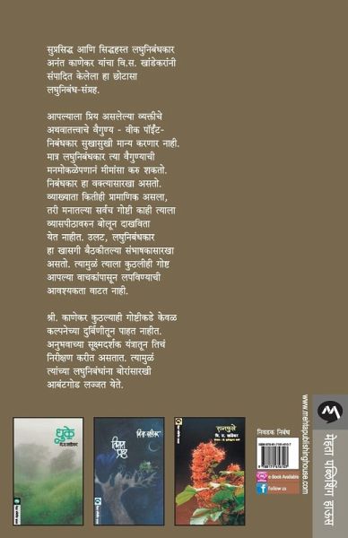 THIS IS A SHORT EASSY COLLECTION OF RENOWN AUTHOR ANANT KANEKAR EDITED BY V.S.KHANDEKAR. THESE ARE ESSAYS WHERE AUTHOR HAS PRECISELY POINTED OUT VARIOUS ASPECTS OF PERSONALITIES. THESE ARE INTELLECTUAL THOUGH HUMOUROUS ESSAYS.