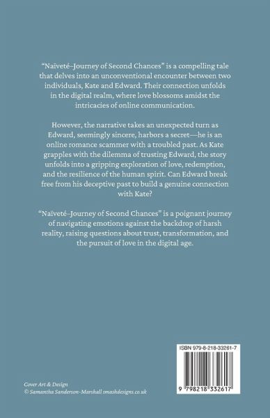 Naïveté-Journey of Second Chances" is a compelling tale that delves into an unconventional encounter between two individuals, Kate and Edward. Their connection unfolds in the digital realm, where love blossoms amidst the intricacies of online communication. However, the narrative takes an unexpected turn as Edward, seemingly sincere, harbors a secret-he is an online romance scammer with a troubled past. As Kate grapples with the dilemma of trusting Edward, the story unfolds into a gripping exploration of love, redemption, and the resilience of the human spirit. Can Edward break free from his deceptive past to build a genuine connection with Kate? "Naïveté-Journey of Second Chances" is a poignant journey of navigating emotions against the backdrop of harsh reality, raising questions about trust, transformation, and the pursuit of love in the digital age.