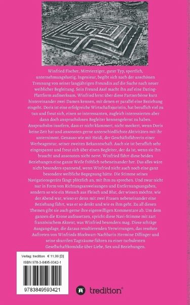 Winfried Fischer, Mittvierziger, guter Typ, sportlich, unternehmungslustig, Ingenieur, begibt sich nach der unschönen Trennung von seiner langjährigen Freundin auf die Suche nach neuer weiblicher Begleitung. Sein Freund Axel macht ihn auf eine Dating-Plattform aufmerksam. Winfried lernt über diese Partnerbörse kurz hintereinander zwei Damen kennen, mit denen er parallel eine Beziehung eingeht. Doris ist eine erfolgreiche Wirtschaftsjuristin, hat beruflich viel zu tun und freut sich, einen so interessanten, zugleich interessierten, aber dann doch anspruchslosen Begleiter kennengelernt zu haben. Anspruchslos insofern, dass er nicht klammert, nicht meckert, wenn Doris keine Zeit hat und ansonsten gerne unterschiedlichste Aktivitäten mit ihr unternimmt. Genauso wie mit Heidi, der Geschäftsführerin einer Werbeagentur, seiner zweiten Bekanntschaft. Auch sie ist beruflich sehr eingespannt und freut sich über einen Begleiter, der da ist, wenn sie ihn braucht und ansonsten nicht nervt. Winfried führt diese beiden Beziehungen eine ganze Weile fröhlich nebeneinander her. Das alles wäre nicht besonders spannend, wenn Winfried nicht auch noch eine ganz besondere weibliche Begegnung hätte. Die Stimme seines Navigationsgeräts fängt plötzlich an, mit ihm zu sprechen. Und zwar nicht nur in Form von Richtungsanweisungen und Entfernungsangaben, sondern so wie ein Mensch aus Fleisch und Blut, der wissen möchte, wie der Abend war, wieso er denn mit zwei Frauen nebeneinander eine Beziehung führt, was er so denkt und wie es ihm geht. Zu all diesen Themen gibt sie auch gerne ihre eigenwilligen Kommentare ab. Um dem ganzen die Krone aufzusetzen, spricht diese Navi-Stimme mit zart französischem Akzent, was Winfried besonders mag. Diese schräge Ausgangslage, die daraus resultierenden Verwirrungen, das resolute Auftreten von Winfrieds Blockwart-Nachbarin Hermine Dillinger und seine skurrilen Tagträume führen zu einer turbulenten Gesellschaftkomödie über Liebe, Sex und Beziehungen.