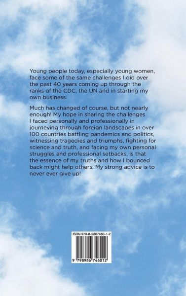 Young people today, especially young women, face some of the same challenges I did over the past 40 years coming up through the ranks in the Centers for Disease Control and Prevention (CDC), in top leadership roles in the United Nations, and in starting my own business. Much has changed of course, but not nearly enough! My hope in sharing the challenges I faced personally and professionally in journeying through foreign landscapes in over 100 countries, battling pandemics and politics, witnessing tragedies and triumphs, fighting for science and truth, and facing my own personal struggles and professional setbacks...is that the essence of my truths and how I bounced back might help others. My strong advice is to never ever give up!