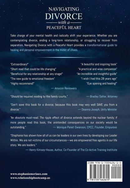 Take charge of your mental health and radically shift your experience. Whether you are contemplating divorce, ending a long-term relationship, or struggling to recover from a separation, Navigating Divorce with a Peaceful Heart provides a transformational guide to healing and personal empowerment in the midst of chaos.