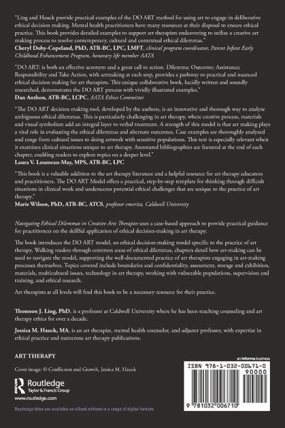 The book introduces the DO ART model, an ethical decision-making model specific to the practice of art therapy. Walking readers through common areas of ethical dilemmas, chapters detail how art-making can be used to navigate the model, supporting the well-documented practice of art therapists engaging in art-making processes themselves. Topics covered include boundaries and confidentiality, assessment, storage and exhibition, materials, multicultural issues, technology in art therapy, working with vulnerable populations, supervision and training, and ethical research.