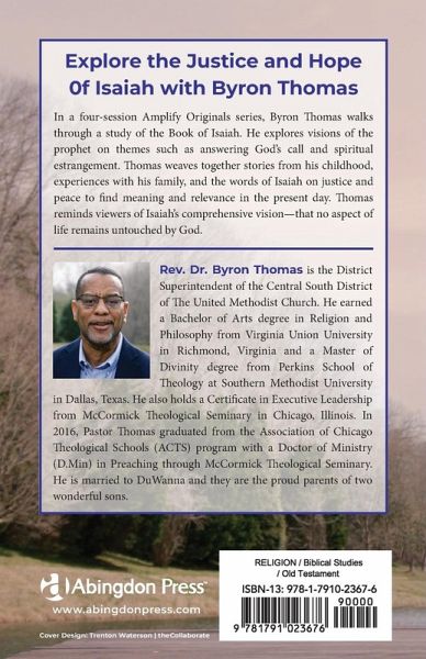 In a four-session Amplify Originals series, Byron Thomas walks through a study of the book of Isaiah. He explores four visions of the prophet on themes such as answering God's call and spiritual estrangement. Thomas weaves together stories from his childhood, experiences with his family, and the words of Isaiah on justice and peace to find meaning and relevance in the present day. Thomas reminds viewers of Isaiah's comprehensive vision - that no aspect of life remains untouched by God. This four session participant book accompanies the AmplifyMedia.com study with Byron Thomas. Explore the book of Isaiah.