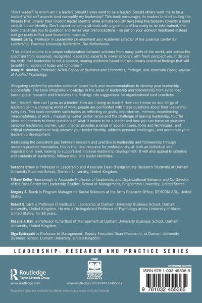 "Navigating Leadership provides a refreshing take on how contemporary leaders can develop in their role while acknowledging doubts and hurdles. The book includes many exercises for leaders, taking them from the reflexive stance they may take in their early career to the difficulties of exiting leadership roles. In this, identity-related challenges are addressed carefully, including through original interests into 'impostorism', alternating between follower and leader identity, and possible conflicts between role and professional identity. The shared sense of purpose and practice orientation in the group of editors and authors can be felt throughout."