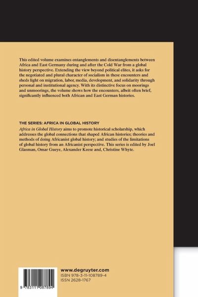 This edited volume examines entanglements and disentanglements between Africa and East Germany during and after the Cold War from a global history perspective. Extending the view beyond political elites, it asks for the negotiated and plural character of socialism in these encounters and sheds light on migration, media, development, and solidarity through personal and institutional agency. With its distinctive focus on moorings and unmoorings, the volume shows how the encounters, albeit often brief, significantly influenced both African and East German histories.