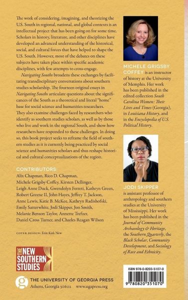 The work of considering, imagining, and theorizing the U.S. South in regional, national, and global contexts is an intellectual project that has been going on for some time. Scholars in history, literature, and other disciplines have developed an ad-vanced understanding of the historical, social, and cultural forces that have helped to shape the U.S. South. However, most of the debates on these subjects have taken place within specific academic disciplines, with few attempts to cross-engage. Navigating Souths broadens these exchanges by facilitating transdisciplinary conversations about southern studies scholarship. The fourteen original essays in Navigating Souths articulate questions about the significances of the South as a theoretical and literal "home" base for social science and humanities researchers. They also examine challenges faced by researchers who identify as southern studies scholars, as well as by those who live and work in the regional South, and show how researchers have responded to these challenges. In doing so, this book project seeks to reframe the field of southern studies as it is currently being practiced by social science and humanities scholars and thus reshape historical and cultural conceptualizations of the region. Contributors: Alix Chapman, Rico D. Chapman, Michele Grigsby Coffey, Kirsten A. Dellinger, Leigh Anne Duck, Gwendolyn Ferreti, Kathryn Green, Robert Greene II, John Hayes, Jeffrey T. Jackson, Anne Lewis, Katie McKee, Kathryn Radishofski, Emily Satterwhite, Jodi Skipper, Jon Smith, Melanie Benson Taylor, Annette Trefzer, Daniel Cross Turner, Charles Reagan Wilson