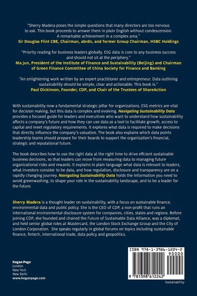 Chapter 01: Why sustainability data matters to organizational leaders; Chapter 02: The ABCs of sustainability data use cases; Chapter 03: What is ESG data?; Chapter 04: How to map your organization's ESG maturity; Chapter 05: Prioritizing sustainability data use cases; Chapter 06: Determine your sustainability data ambitions; Chapter 07: Sustainability regulations Europe's biggest export?; Chapter 08: International sustainability data trends; Chapter 09: Identifying greenwashing; Chapter 10: Sustainability data in the modern board; Chapter 11: Conclusion future proofing with sustainability data;