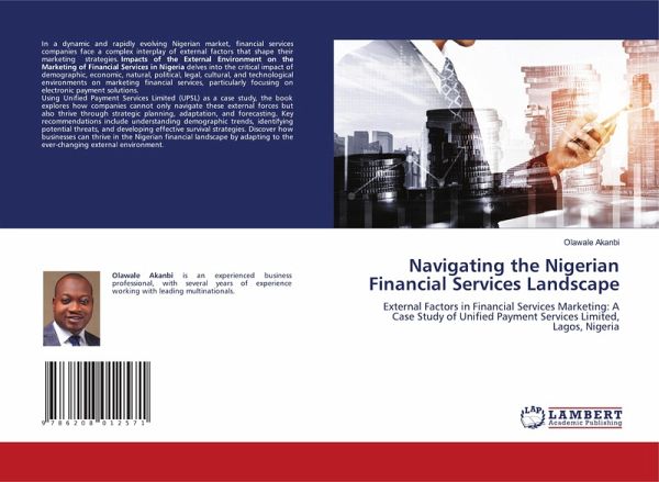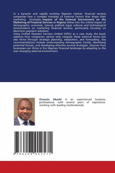 In a dynamic and rapidly evolving Nigerian market, financial services companies face a complex interplay of external factors that shape their marketing strategies. Impacts of the External Environment on the Marketing of Financial Services in Nigeria delves into the critical impact of demographic, economic, natural, political, legal, cultural, and technological environments on marketing financial services, particularly focusing on electronic payment solutions.Using Unified Payment Services Limited (UPSL) as a case study, the book explores how companies cannot only navigate these external forces but also thrive through strategic planning, adaptation, and forecasting. Key recommendations include understanding demographic trends, identifying potential threats, and developing effective survival strategies. Discover how businesses can thrive in the Nigerian financial landscape by adapting to the ever-changing external environment.