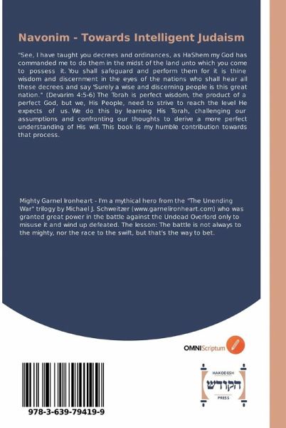 "See, I have taught you decrees and ordinances, as HaShem my God has commanded me to do them in the midst of the land unto which you come to possess it. You shall safeguard and perform them for it is thine wisdom and discernment in the eyes of the nations who shall hear all these decrees and say 'Surely a wise and discerning people is this great nation." (Devarim 4:5-6) The Torah is perfect wisdom, the product of a perfect God, but we, His People, need to strive to reach the level He expects of us. We do this by learning His Torah, challenging our assumptions and confronting our thoughts to derive a more perfect understanding of His will. This book is my humble contribution towards that process.