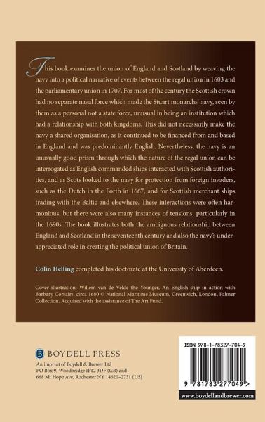 This book examines the union of England and Scotland by weaving the navy into a political narrative of events between the regal union in 1603 and the parliamentary union in 1707. For most of the century the Scottish crown had no separate naval force which made the Stuart monarchs' navy, seen by them as a personal not a state force, unusual in being an institution which had a relationship with both kingdoms. This did not necessarily make the navy a shared organisation, as it continued to be financed from and based in England and was predominantly English. Nevertheless, the navy is an unusually good prism through which the nature of the regal union can be interrogated as English commanded ships interacted with Scottish authorities, and as Scots looked to the navy for protection from foreign invaders, such as the Dutch in the Forth in 1667, and for Scottish merchant ships trading with the Baltic and elsewhere. These interactions were often harmonious, but there were also many instances of tensions, particularly in the 1690s. The book illustrates both the ambiguous relationship between England and Scotland in the seventeenth century and also the navy's under-appreciated role in creating the political union of Britain.