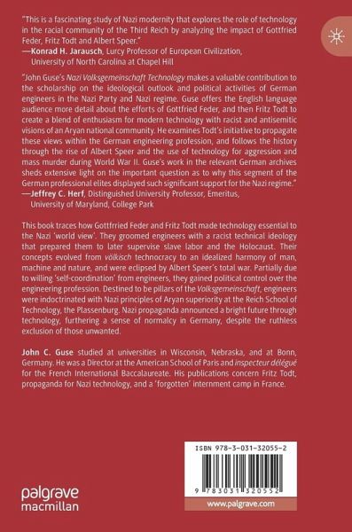 John Guse's study on Todt's brand of ideology for Nazi engineers, as well as Gottfried Feder's more radical version, is ... a welcome addition to investigations into a key member of Hitler's elite. ... Guse describes with admirable clarity and detail how Todt, the "skilled bureaucratic infighter," forged a brilliant career ... . Guse conducts a meticulous examination of Nazi technical ideology and describes convincingly how it helped turn many engineers into perpetrators. (Charles Dick, Central European History, May 13, 2025)