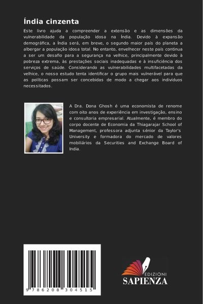 Este livro ajuda a compreender a extensão e as dimensões da vulnerabilidade da população idosa na Índia. Devido à expansão demográfica, a Índia será, em breve, o segundo maior país do planeta a albergar a população idosa total. No entanto, envelhecer neste país continua a ser um desafio para a segurança na velhice, principalmente devido à pobreza extrema, às prestações sociais inadequadas e à insuficiência dos serviços de saúde. Considerando as vulnerabilidades multifacetadas da velhice, o nosso estudo tenta identificar o grupo mais vulnerável para que as políticas possam ser concebidas de modo a chegar aos indivíduos necessitados.