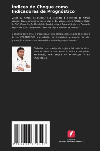 Quase 30 milhões de pessoas são afectadas e 3 milhões de mortes ocorrem todos os anos devido à sépsis. De acordo com o Relatório Global da OMS (Organização Mundial de Saúde) sobre a Epidemiologia e a Carga da Sépsis de 2020, metade dos casos de sépsis afectam as crianças. O objetivo deste livro é proporcionar uma compreensão rápida da sépsis e do seu PROGNÓSTICO a estudantes de licenciatura, estagiários de pós-graduação e professores de medicina numa linguagem simples.