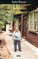 Ben yasama kidemine dayanarak diyecegim ki, yasama sevincini arayip ele gecirmek icin, caba göstermek gerekiyor. Gözümüz korkmasin Caba dedigim icin, büyük zahmetlere girisilecegi sanilmasin Yapilacak is, sadece bir gözlük takmaktan ibaret... O da ne mi S .. Mizah gözlügü, mizah... Bütün marifet bu. Aydin Boysan, Ne Güzel Günlermis basligi altinda topladigi bu son yazilarinda siyasetten siir ve müzige, gündelik hayattan uzay ve evrene uzanan genis ilgi alani icinde, daldan dala dolasirken, olaylara insanlara ve esyaya bu mizah gözlügü ile bakiyor.