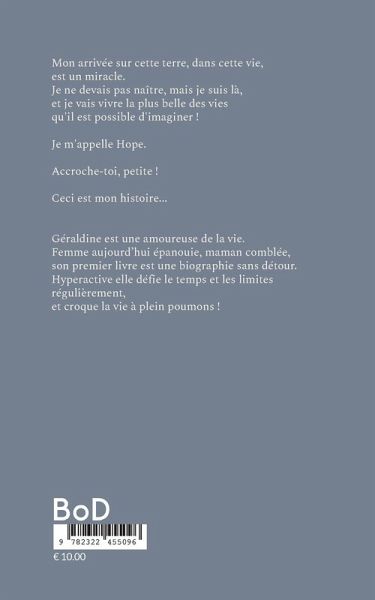 Mon arrivée sur cette terre, dans cette vie, est un miracle.Je ne devais pas naitre, mais je suis là, en vie et je vais vivre la plus belle des vies qu'il est possible d'imaginer !Je m'appelle Hope.Accroche-toi, petite !Ceci est mon histoire...