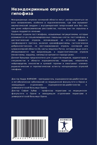 Neändokrinnye opuholi sellqrnoj oblasti mogut rasprostranqt'sq wo wseh naprawleniqh, osobenno w nadselezenochnoe, gde oni wyzywaüt hiazmaticheskij sindrom s wnutricherepnoj gipertenziej ili bez nee, ili dazhe nejropsihicheskie rasstrojstwa, poätomu oni tak ser'ezny i trudno poddaütsq lecheniü.Razlichaüt opuholi postgipofiza, nazywaemye pituicitomami, kotorye razwiwaütsq iz specializirowannyh glial'nyh kletok postgipofiza, i disgeneticheskie opuholi, woznikaüschie iz ostatkow faringo-gipofizarnogo protoka, wklüchaq kraniofaringiomy, gistologicheski dobrokachestwennaq, no mestnoinwaziwnaq opuhol' sellqrnoj ili suprasellqrnoj oblasti [3], kisty meshochka Ratke, kotorye chasche wsego obnaruzhiwaütsq pri wizualizacii, a nedisgeneticheskie opuholi (meningiomy, hordomy, lipomy) wstrechaütsq gorazdo rezhe.Dannaq broshüra prednaznachena dlq studentow-medikow, ordinatorow i specialistow w oblasti ändokrinologii, pediatrii, newrologii, nejrohirurgii, onkologii i luchewoj terapii i ohwatywaet kliniko-radiologicheskie i terapewticheskie aspekty neändokrinnyh opuholej gipofiza.