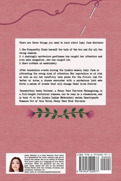 There are three things you need to know about Lady Jane Morrison: 1. She frequently finds herself the talk of the ton and for all the wrong reasons. 2. A dashingly mysterious gentleman has caught her attention and even more dangerous...she has caught his. 3. She's rubbish at embroidery. After scandalous events during the London season, Lady Jane is attracting the wrong kind of attention. Her reputation is at risk as well as all her carefully laid plans for the future. And for better or worse, a chance encounter with a mysterious lord sets forth a series of events that will change their lives forever. 'Neanderthal Seeks Duchess: A Smartypants Romance Out Of This World Title', is a Penny Reid Universe reimagining, where the characters of Janie Morris and Quinn Sullivan from the Knitting in the City Series have been reimagined as existing in Regency England. It is a full-length historical romance, can be read as a standalone, and is book #1 in the London Ladies Embroidery series, Smartypants Romance Out of this World, Penny Reid Book Universe.