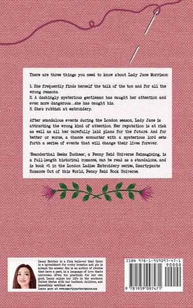 There are three things you need to know about Lady Jane Morrison: 1. She frequently finds herself the talk of the ton and for all the wrong reasons. 2. A dashingly mysterious gentleman has caught her attention and even more dangerous...she has caught his. 3. She's rubbish at embroidery. After scandalous events during the London season, Lady Jane is attracting the wrong kind of attention. Her reputation is at risk as well as all her carefully laid plans for the future. And for better or worse, a chance encounter with a mysterious lord sets forth a series of events that will change their lives forever. 'Neanderthal Seeks Duchess: A Smartypants Romance Out Of This World Title', is a Penny Reid Universe reimagining, where the characters of Janie Morris and Quinn Sullivan from the Knitting in the City Series have been reimagined as existing in Regency England. It is a full-length historical romance, can be read as a standalone, and is book #1 in the London Ladies Embroidery series, Smartypants Romance Out of this World, Penny Reid Book Universe.