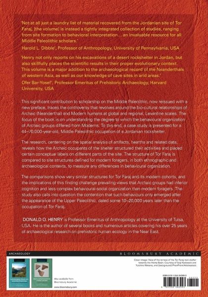 This significant contribution to scholarship on the Middle Paleolithic, now reissued with a new preface, traces the controversy that revolves around the bio-cultural relationships of Archaic (Neanderthal) and Modern humans at global and regional, Levantine scales. The focus of the book is on understanding the degree to which the behavioral organization of Archaic groups differed from Moderns. To this end, a case study is presented for a 44-70,000 year old, Middle Paleolithic occupation of a Jordanian rockshelter. The research, centering on the spatial analysis of artifacts, hearths and related data, reveals how the Archaic occupants of the shelter structured their activities and placed certain conceptual labels on different parts of the site. The structure of Tor Faraj is compared to site structures defined for modern foragers, in both ethnographic and archaeological contexts, to measure any differences in behavioral organization. The comparisons show very similar structures for Tor Faraj and its modern cohorts, and the implications of this finding challenge prevailing views that Archaic groups had inferior cognition and less complex behavioral-social organization than modern foragers. The study also calls into question the contention that such behaviors only emerged after the appearance of the Upper Paleolithic, dated some 10-20,000 years later than the occupation of Tor Faraj.