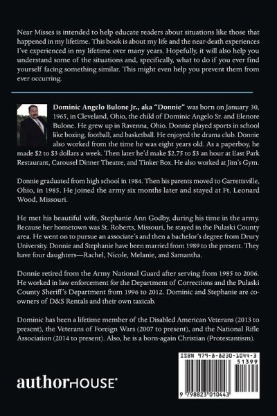 Near Misses is intended to help educate readers about situations like those that happened in my lifetime. This book is about my life and the near-death experiences I've experienced in my lifetime over many years. Hopefully, it will also help you understand some of the situations and, specifically, what to do if you ever find yourself facing something similar. This might even help you prevent them from ever occurring.