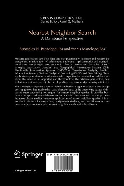 This monograph explores the way spatial database management systems aim at supporting queries that involve the space characteristics of the underlying data, and discusses query processing techniques for nearest neighbor queries. It provides both basic concepts and state-of-the-art results in spatial databases and parallel processing research, and studies numerous applications of nearest neighbor queries.
