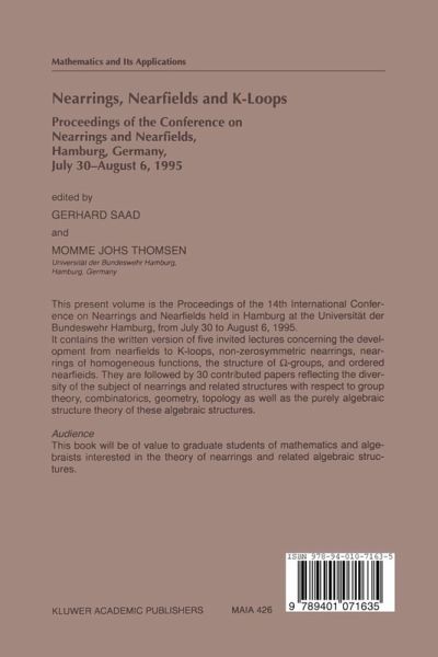 This present volume is the Proceedings of the 14th International Conference on Near rings and Nearfields held in Hamburg at the Universitiit der Bundeswehr Hamburg, from July 30 to August 06, 1995. This Conference was attended by 70 mathematicians and many accompanying persons who represented 22 different countries from all five continents. Thus it was the largest conference devoted entirely to nearrings and nearfields. The first of these conferences took place in 1968 at the Mathematische For schungsinstitut Oberwolfach, Germany. This was also the site of the conferences in 1972, 1976, 1980 and 1989. The other eight conferences held before the Hamburg Conference took place in eight different countries. For details about this and, more over, for a general historical overview of the development of the subject, we refer to the article "On the beginnings and development of near-ring theory" by G. Betsch [3]. During the last forty years the theory of nearrings and related algebraic struc tures like nearfields, nearmodules, nearalgebras and seminearrings has developed into an extensive branch of algebra with its own features. In its position between group theory and ring theory, this relatively young branch of algebra has not only a close relationship to these two more well-known areas of algebra, but it also has, just as these two theories, very intensive connections to many further branches of mathematics.