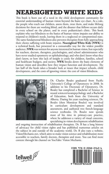This book is born out of a need in the child development community for essential understanding of human vision beyond the basic eye chart. As a rule, the people who teach our children, assess them, treat them, and make lifelong decisions for them are working blind, and the disaster that follows occurs daily in every school on the planet, and in every pediatrician's clinic. This book explains why our blindness to the basics of human vision impairs our ability to respond to children's needs, leaving them in a neglected or compromised state. The same fundamental blindness also prevents therapists from fully approaching their clients suffering with brain injuries. Nearsighted White Kids (NWK) is a technical book, but presented in a consumable way for the widest possible audience. NWK was written for anyone interested in human vision, but especially for teachers, doctors, therapists, psychologists, and school administrators who have never studied optometry or ophthalmology, and who don't know what they don't know, or how this lack of insight is costly for children, families, school and healthcare budgets, and society. NWK breaks down the basic elements of human vision and describes how they impact function and development. The last half of the book takes a broader look at issues that impact schools, child development, and the costs of ignoring vision: the cost of vision blindness.