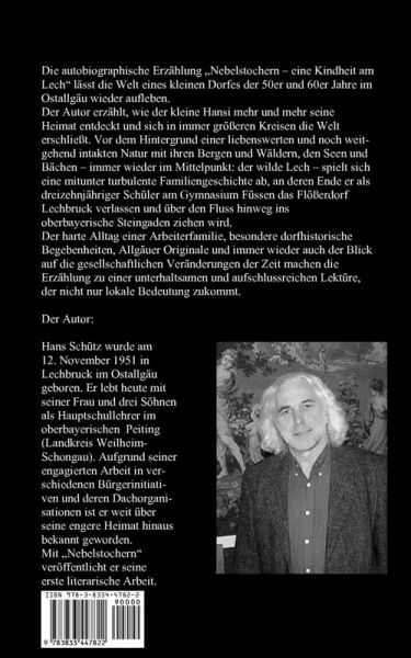 Die Erzählung "Nebelstochern - Eine Kindheit am Lech" lässt die Welt eines kleinen Dorfes der 50er und 60er Jahre im Allgäu wieder aufleben. Erzählt wird, wie der kleine Hansi mehr und mehr seine Hei-mat entdeckt und in immer größeren Kreisen sich die Welt erschließt. Eine turbulente Familiengeschichte,der harte Alltag einer Arbeiterfamilie, historische Begebenheiten und Allgäuer Originale bilden den Hintergrund der Erzählung, der weit mehr als nur lokale Bedeutung zukommt.