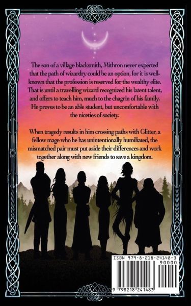 The son of a village blacksmith, Mithron never expected that the path of wizardry would be an option, for it is well-known that the profession is reserved for the wealthy elite. That is until a traveling wizard recognizes his latent talent, and offers to teach him, much to the chagrin of his family. He proves to be an able student, but uncomfortable with the niceties of society. When tragedy results in him crossing paths with Glitter, a fellow mage who he has unintentionally humiliated, the mismatched pair must put aside their differences and work together along with new friends to save a kingdom.