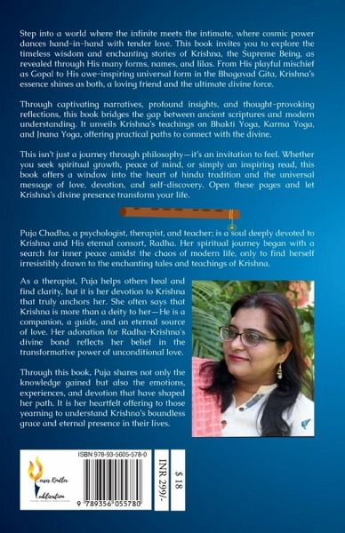 Step into a world where the infinite meets the intimate, where cosmic power dances hand-in-hand with tender love. This book invites you to explore the timeless wisdom and enchanting stories of Krishna, the Supreme Being, as revealed through His many forms, names, and lilas. From His playful mischief as Gopal to His awe-inspiring universal form in the Bhagavad Gita, Krishna's essence shines as both, a loving friend and the ultimate divine force. Through captivating narratives, profound insights, and thought-provoking reflections, this book bridges the gap between ancient scriptures and modern understanding. It unveils Krishna's teachings on Bhakti Yoga, Karma Yoga, and Jnana Yoga, offering practical paths to connect with the divine. This isn't just a journey through philosophy-it's an invitation to feel. Whether you seek spiritual growth, peace of mind, or simply an inspiring read, this book offers a window into the heart of hindu tradition and the universal message of love, devotion, and self-discovery. Open these pages and let Krishna's divine presence transform your life.