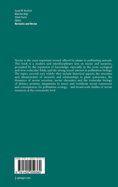 Nectar is the most important reward offered by plants to pollinating animals. This book is a modern and interdisciplinary text on nectar and nectaries, prompted by the expansion of knowledge, especially in the more ecological and now molecular fields, and the strong recent interest in pollination biology. The topics covered vary widely: they include historical aspects, the structure and ultrastructure of nectaries and relationships to plant systematics, the dynamics of nectar secretion, nectar chemistry and the molecular biology of defence proteins, adaptations to insect and vertebrate nectar consumers and consequences for pollination ecology, and broad-scale studies of nectar resources at the community level.