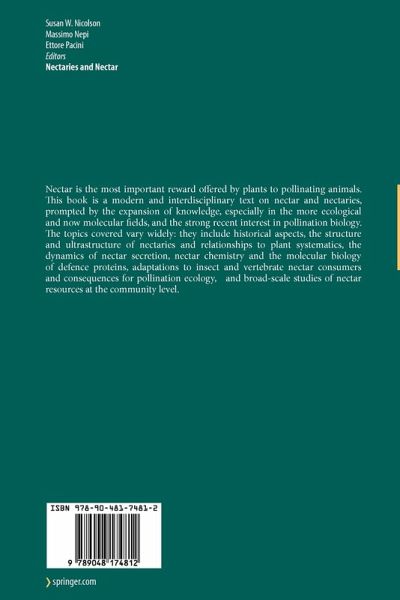 Nectar is the most important reward offered by plants to pollinating animals. This book is a modern and interdisciplinary text on nectar and nectaries, prompted by the expansion of knowledge, especially in the more ecological and now molecular fields, and the strong recent interest in pollination biology. The topics covered vary widely: they include historical aspects, the structure and ultrastructure of nectaries and relationships to plant systematics, the dynamics of nectar secretion, nectar chemistry and the molecular biology of defence proteins, adaptations to insect and vertebrate nectar consumers and consequences for pollination ecology, and broad-scale studies of nectar resources at the community level.