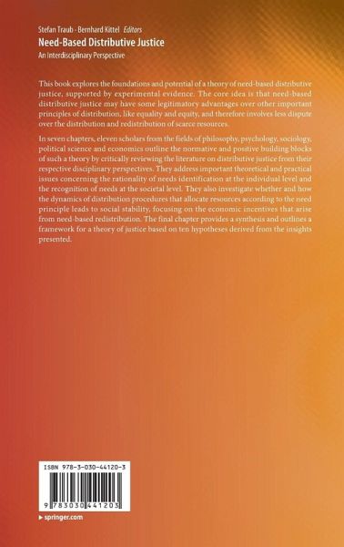 This book explores the foundations and potential of a theory of need-based distributive justice, supported by experimental evidence. The core idea is that need-based distributive justice may have some legitimatory advantages over other important principles of distribution, like equality and equity, and therefore involves less dispute over the distribution and redistribution of scarce resources.