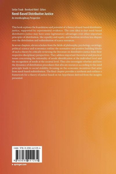 This book explores the foundations and potential of a theory of need-based distributive justice, supported by experimental evidence. The core idea is that need-based distributive justice may have some legitimatory advantages over other important principles of distribution, like equality and equity, and therefore involves less dispute over the distribution and redistribution of scarce resources.