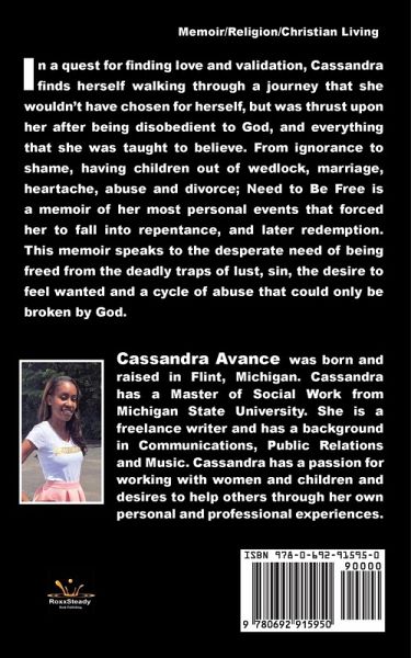 In a quest for finding love and validation, Cassandra finds herself walking through a journey that she wouldn't have chosen for herself, but was thrust upon her after being disobedient to God, and everything that she was taught to believe. From ignorance to shame, having children out of wedlock, marriage, heartache, abuse and divorce; Need to Be Free is a memoir of her most personal events that forced her to fall into repentance, and later redemption. This memoir speaks to the desperate need of being freed from the deadly traps of lust, sin, the desire to feel wanted and a cycle of abuse that could only be broken by God.