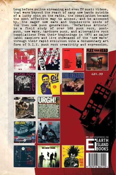 Nefarious Artists: The Evolution and Art of the Punk Rock, Post-Punk, New Wave, Hardcore Punk and Alternative Rock Compilation Record 1976 - 1989 by Welly Artcore. Long before online streaming and even TV music videos, that were beyond the reach of many new bands outside of a lucky spin on the radio, the compilation became the most effective way to access, and be accessed by, the eager new ears and inquisitive minds of the then new punk generation. 'Nefarious Artists' is a field study of over 500 punk rock, post- punk, new wave, hardcore punk, and alternative rock compilations from their beginnings in 1976 as major label samplers and live showcases of the 'new wave' through their rapid evolution into a documentary art form of D.I.Y. punk rock creativity and expression. 424 pages packed with full colour alternative rock and punk compilation covers, and the stories behind these important releases.