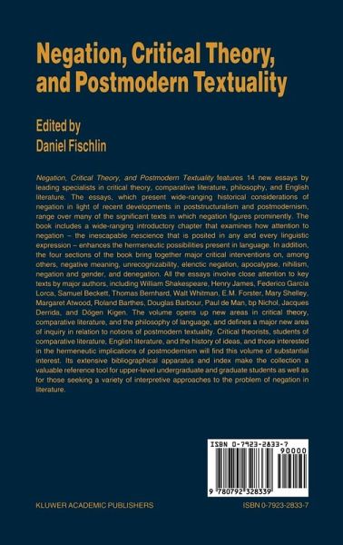 Negation, Critical Theory, and Postmodern Textuality features 14 new essays by leading specialists in critical theory, comparative literature, philosophy, and English literature. The essays, which present wide-ranging historical considerations of negation in light of recent developments in poststructuralism and postmodernism, range over many of the siginificant texts in which negation figures prominently. The book includes a wide-ranging introductory chapter that examines how attention to negation -- the inescapable nescience that is posited in any and every linguistic expression -- enhances the hermeneutic possibilities present in language. In addition, the four sections of the book bring together major critical interventions on, among others, negative meaning, unrecognizability, elenctic negation, apocalypse, nihilism, negation and gender, and denegation. All the essays involve close attention to key texts by major authors, including William Shakespeare, Henry James, Federico García Lorca, Samuel Beckett, Thomas Bernhard, Walt Whitman, E.M. Forster, Mary Shelley, Margaret Atwood, Roland Barthes, Douglas Barbour, Paul de Man, bp Nichol, Jacques Derrida, and Dogen Kigen. The volume opens up new areas in critical theory, comparative literature, and the philosophy of language, and defines a major new area of inquiry in relation to notions of postmodern textuality. Critical theorists, students of comparative literature, English literature, and the history of ideas, and those interested in the hermeneutic implications of postmodernism will find this volume of substantial interest. Its extensive bibliographical apparatus and index make the collection a valuable reference tool for upper-level undergraduate and graduate students as well as for those seeking a variety of interpretive approaches to the problem of negation in literature.