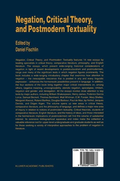 Negation, Critical Theory, and Postmodern Textuality features 14 new essays by leading specialists in critical theory, comparative literature, philosophy, and English literature. The essays, which present wide-ranging historical considerations of negation in light of recent developments in poststructuralism and postmodernism, range over many of the siginificant texts in which negation figures prominently. The book includes a wide-ranging introductory chapter that examines how attention to negation -- the inescapable nescience that is posited in any and every linguistic expression -- enhances the hermeneutic possibilities present in language. In addition, the four sections of the book bring together major critical interventions on, among others, negative meaning, unrecognizability, elenctic negation, apocalypse, nihilism, negation and gender, and denegation. All the essays involve close attention to key texts by major authors, including William Shakespeare, Henry James, Federico García Lorca, Samuel Beckett, Thomas Bernhard, Walt Whitman, E.M. Forster, Mary Shelley, Margaret Atwood, Roland Barthes, Douglas Barbour, Paul de Man, bp Nichol, Jacques Derrida, and Dogen Kigen. The volume opens up new areas in critical theory, comparative literature, and the philosophy of language, and defines a major new area of inquiry in relation to notions of postmodern textuality. Critical theorists, students of comparative literature, English literature, and the history of ideas, and those interested in the hermeneutic implications of postmodernism will find this volume of substantial interest. Its extensive bibliographical apparatus and index make the collection a valuable reference tool for upper-level undergraduate and graduate students as well as for those seeking a variety of interpretive approaches to the problem of negation in literature.
