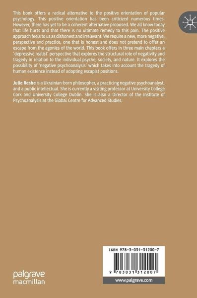 This book offers a radical alternative to the positive orientation of popular psychology. This positive orientation has been criticized numerous times. However, there has yet to be a coherent alternative proposed. We all know today that life hurts and that there is no ultimate remedy to this pain. The positive approach feels to us as dishonest and irrelevant. We require a new, more negative, perspective and practice, one that is honest and does not pretend to offer an escape from the agonies of the world. This book offers in three main chapters a 'depressive realist' perspective that explores the structural role of negativity and tragedy in relation to the individual psyche, society, and nature. It explores the possibility of 'negative psychoanalysis' which takes into account the tragedy of human existence instead of adopting escapist positions.