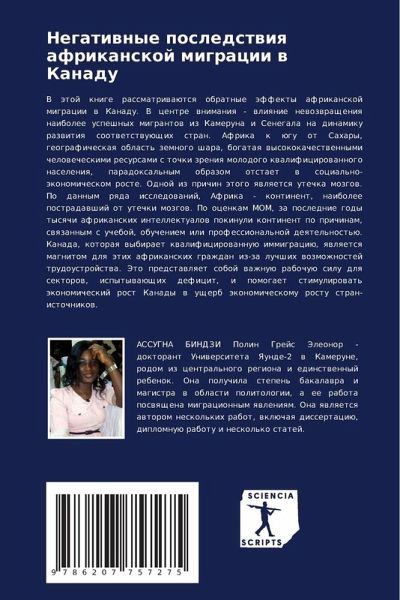 V ätoj knige rassmatriwaütsq obratnye äffekty afrikanskoj migracii w Kanadu. V centre wnimaniq - wliqnie newozwrascheniq naibolee uspeshnyh migrantow iz Kameruna i Senegala na dinamiku razwitiq sootwetstwuüschih stran. Afrika k ügu ot Sahary, geograficheskaq oblast' zemnogo shara, bogataq wysokokachestwennymi chelowecheskimi resursami s tochki zreniq molodogo kwalificirowannogo naseleniq, paradoxal'nym obrazom otstaet w social'no-äkonomicheskom roste. Odnoj iz prichin ätogo qwlqetsq utechka mozgow. Po dannym rqda issledowanij, Afrika - kontinent, naibolee postradawshij ot utechki mozgow. Po ocenkam MOM, za poslednie gody tysqchi afrikanskih intellektualow pokinuli kontinent po prichinam, swqzannym s ucheboj, obucheniem ili professional'noj deqtel'nost'ü. Kanada, kotoraq wybiraet kwalificirowannuü immigraciü, qwlqetsq magnitom dlq ätih afrikanskih grazhdan iz-za luchshih wozmozhnostej trudoustrojstwa. Jeto predstawlqet soboj wazhnuü rabochuü silu dlq sektorow, ispytywaüschih deficit, i pomogaet stimulirowat' äkonomicheskij rost Kanady w uscherb äkonomicheskomu rostu stran-istochnikow.