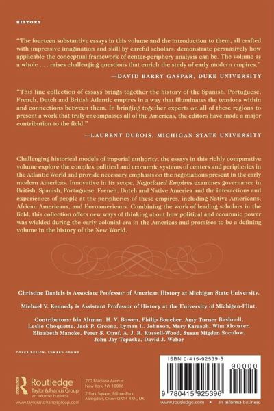 Preface Christine Daniels Peripheries Centers and the Construction of Early Modern American Empires: An Introduction Jack P. Greene and Amy Turner Bushnell Gates and Patterns: Regarding the Spanish American Peripheries Amy Turner Bushnell Integral to Empire: The Vital Peripheries of Colonial Spanish America John Jay Tepask Reconsidering the Center: Puebla and Mexico City 1550-1650 Ida Altman Colonial Centers Colonial Peripheries and the Economic Agency of the Spanish State Lyman L. Johnson and Susan Migden Socolow Bourbons and Barbaros: Center and Periphery in the Reshaping of Spanish Indian Policy David J. Weber Centers and Peripheries in the Luso-Brazilian World 1500-1808 A.J.R. Russell-Wood The Periphery of the Periphery?: Vila Boa de Goias 1780-1835 Mary Karasch Other Netherlands Beyond the Sea: Dutch America Between Metropolitan Control and Divergence 1600-1795 Wim Klooster Center and Periphery in French North America Leslie Choquette The Frontier Era of the French Caribbean 1620s-1690s Philip Boucher Negotiating an Empire: Britain and Its Overseas Peripheries c. 1550-1780 Elizabeth Mancke Transatlantic Colonization and the Definition of Empire in the Early Modern Era: The British-American Experience Jack P. Greene Perceptions from the Periphery: Colonial American Views of Britain's Asiatic Empire 1756-1783 H.V. Bowen Empire for Liberty: Center and Peripheries in Post-Colonial America Peter S. Onuf