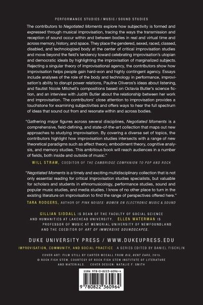 Placing the body at the center of critical improvisation studies, the contributors to Negotiated Moments explore the challenges of negotiating subjectivity through improvisation in various forms-from jazz, Japanese taiko drumming, and Iranian classical music to sound walking and political street theater.